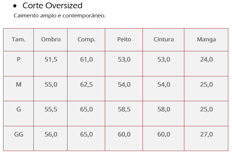 Confeccionada com 50% algodão e 50% poliéster, esta camiseta oversized oferece conforto e toque macio, garantindo um caimento amplo que valoriza qualquer look com modernidade.